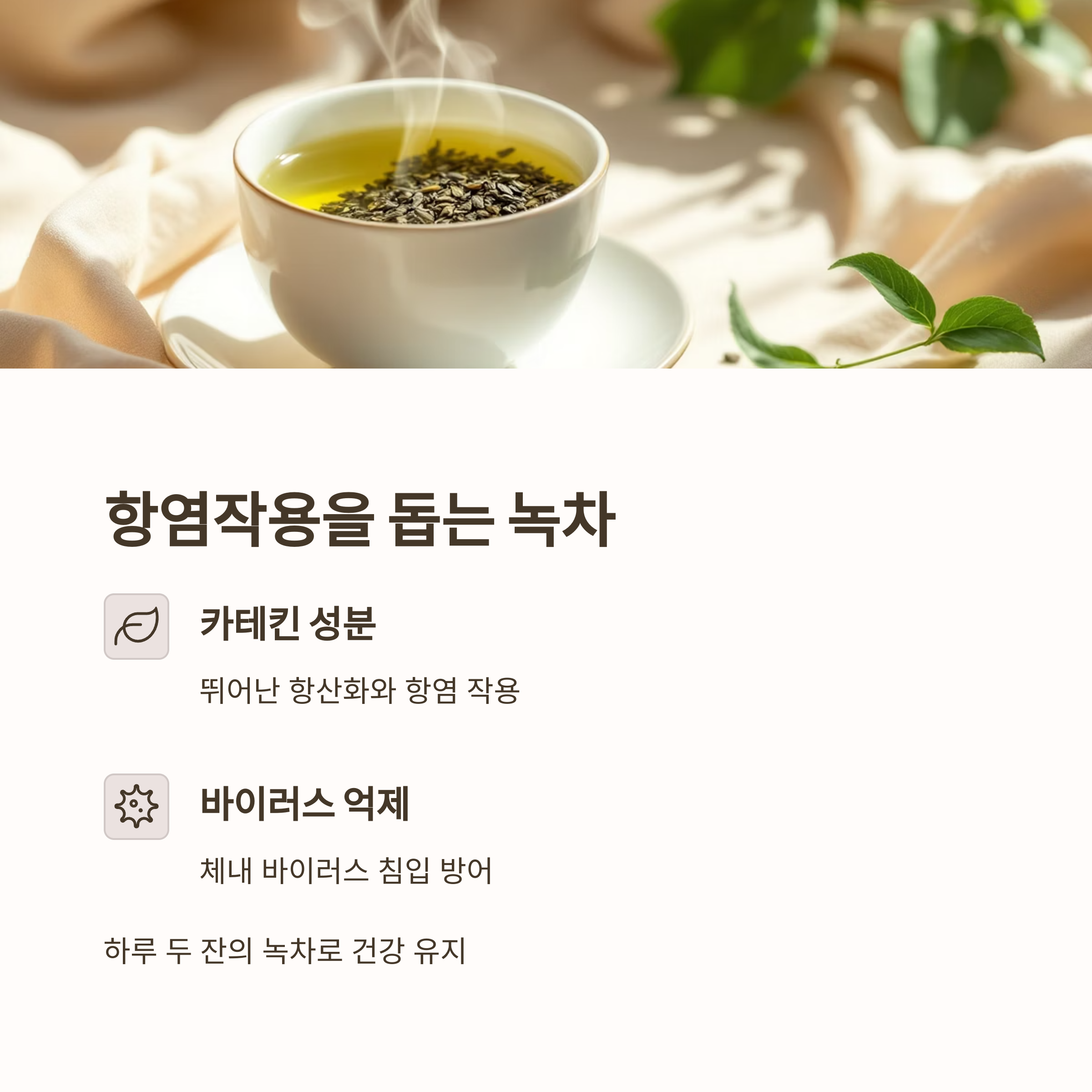 "하루 두 잔의 녹차"가 습관이 되면 건강을 유지하는 데 유리합니다.