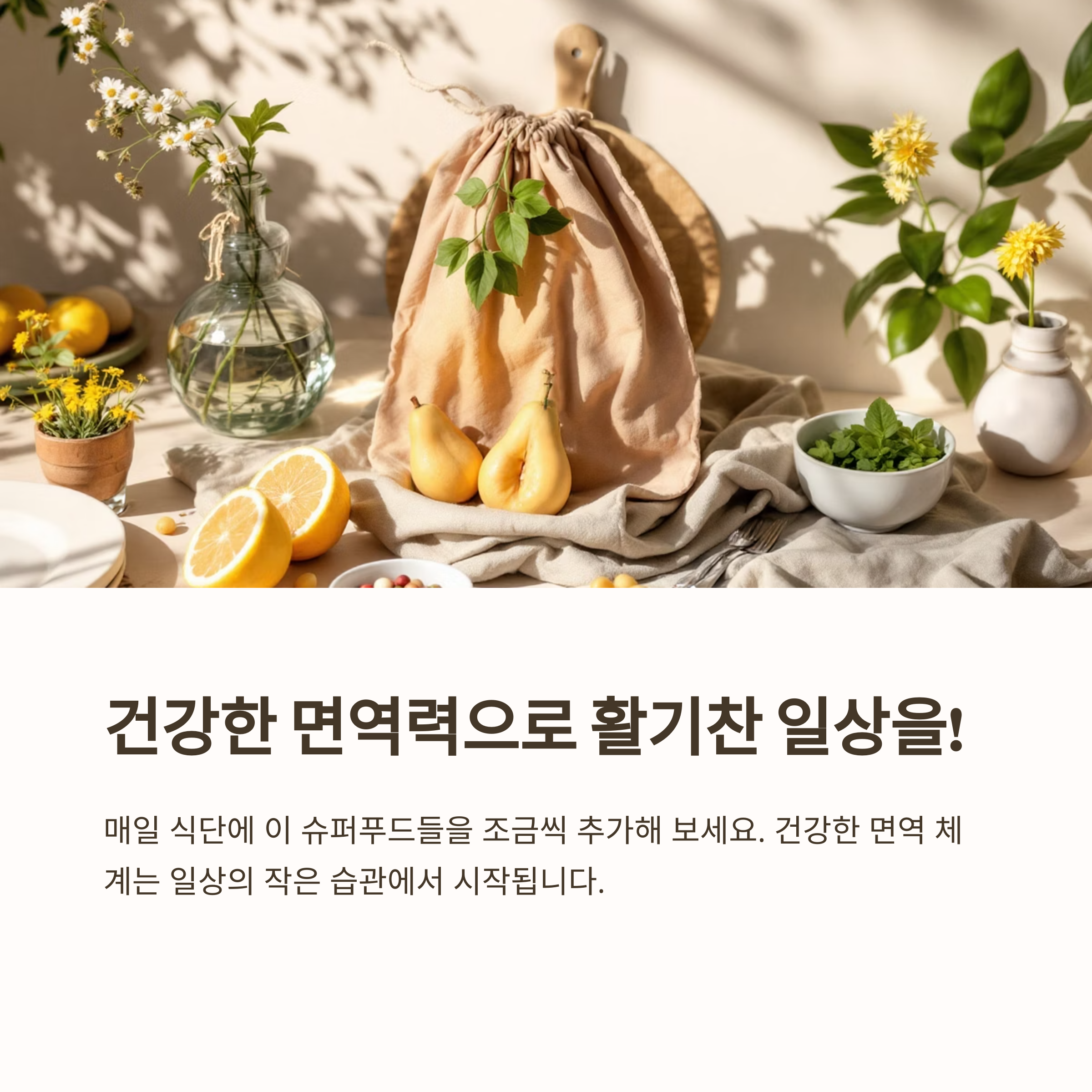 자연스럽게 면역 체계를 튼튼히 할 수 있는 음식 위주로 소개드리며, 지속적인 섭취가 중요하다는 점을 함께 강조합니다.