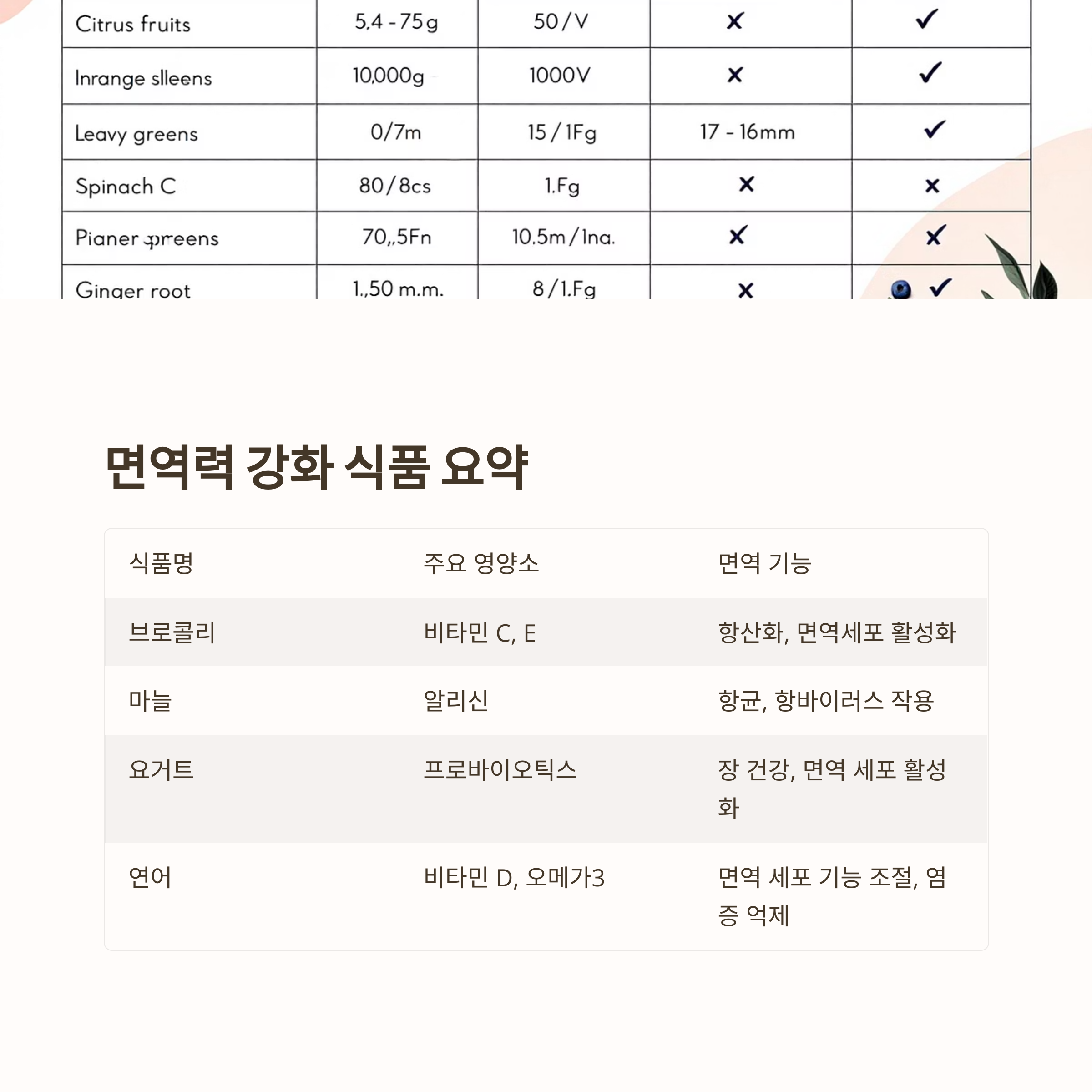 면역력 강화식품 요약표