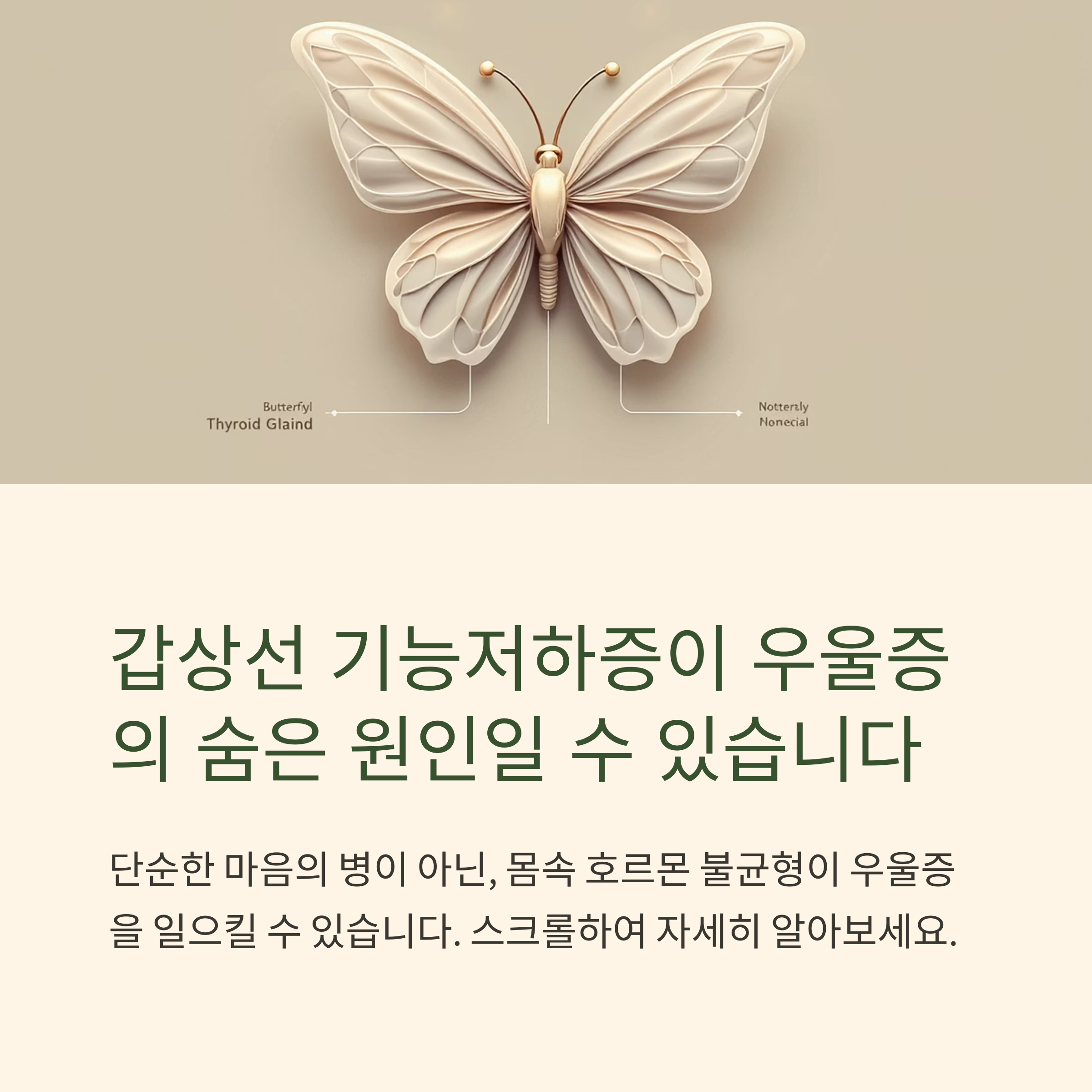 ‘우울증’ 하면 많은 이들이 단순한 마음의 병으로 생각하지만, 그 이면에는 우리 몸속의 복잡한 생리 작용과 호르몬 시스템이 연결되어 있을 수 있습니다. 그중 대표적인 것이 바로 ‘갑상선 기능저하증’입니다.