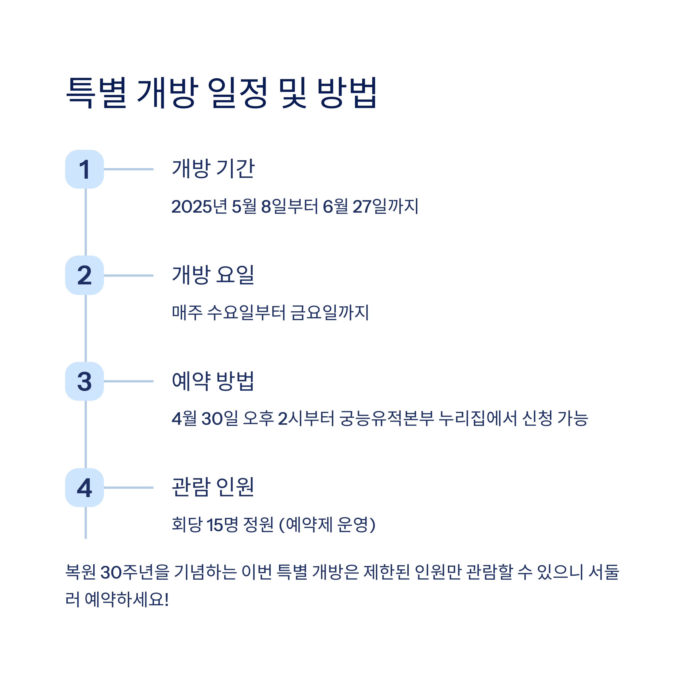 예약 방법: 궁능유적본부 누리집에서 4월 30일 14시부터 접수 가능
