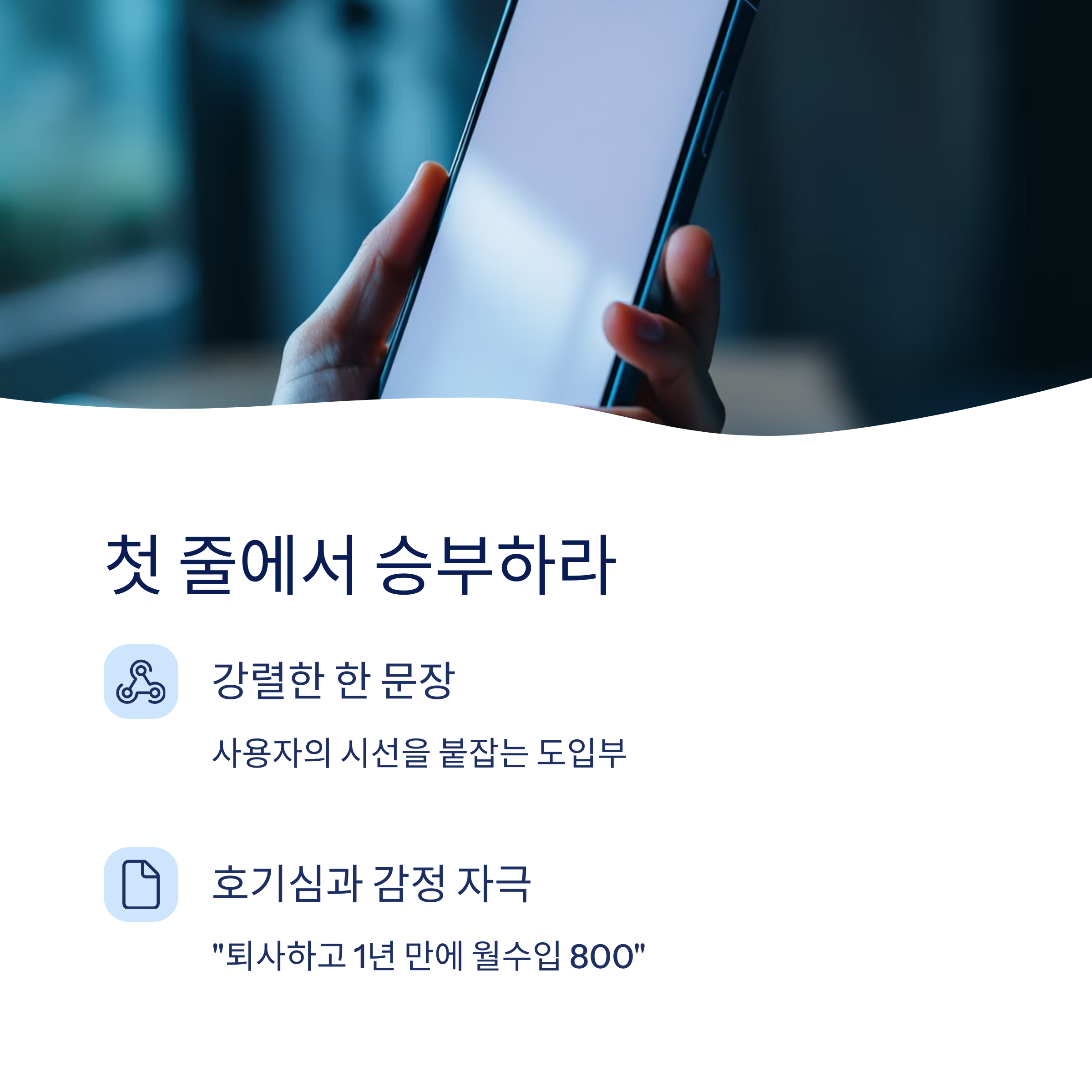 강렬한 한 문장으로 사용자의 시선을 붙잡습니다.