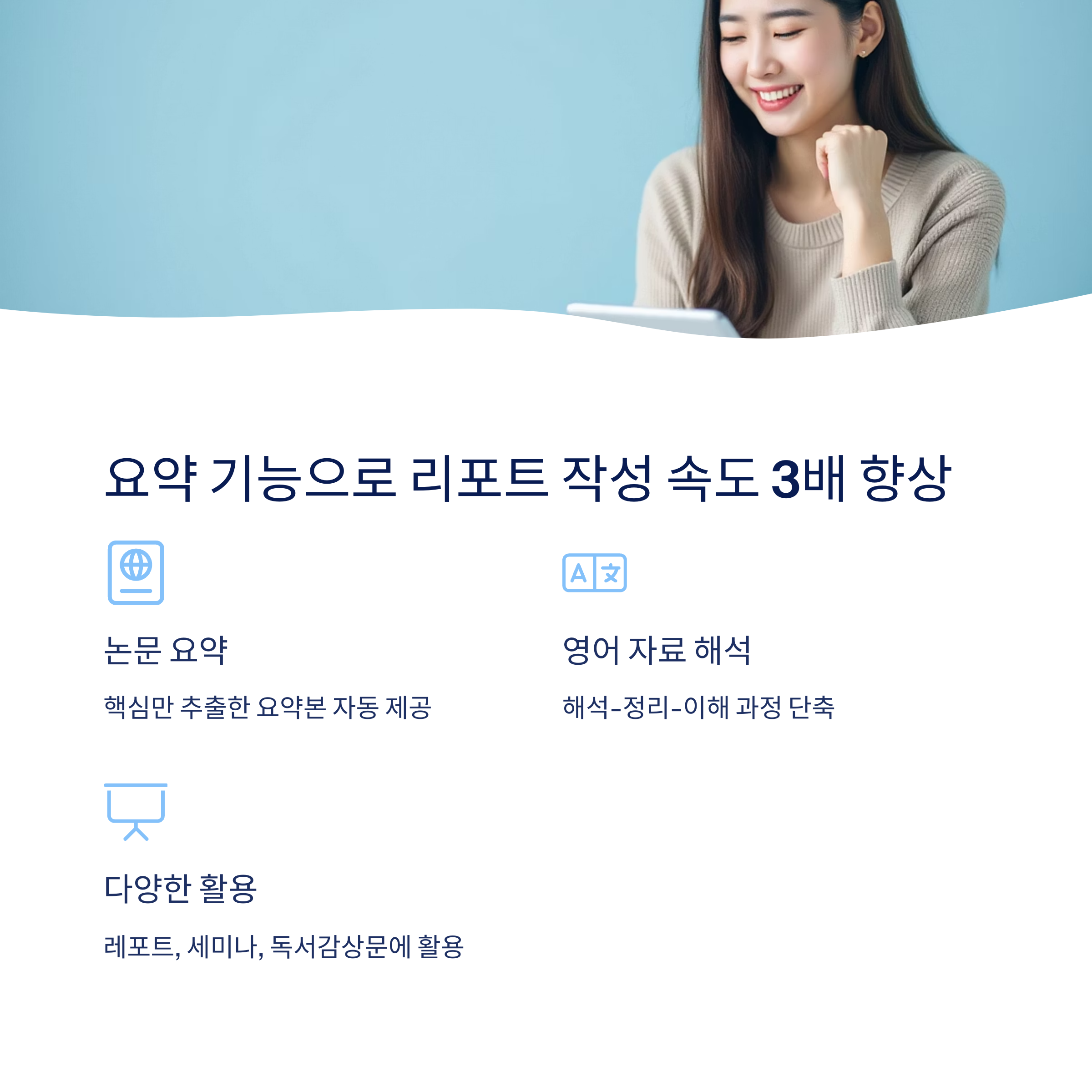 "요약 기능 덕에 영어 논문이 무섭지 않아요."