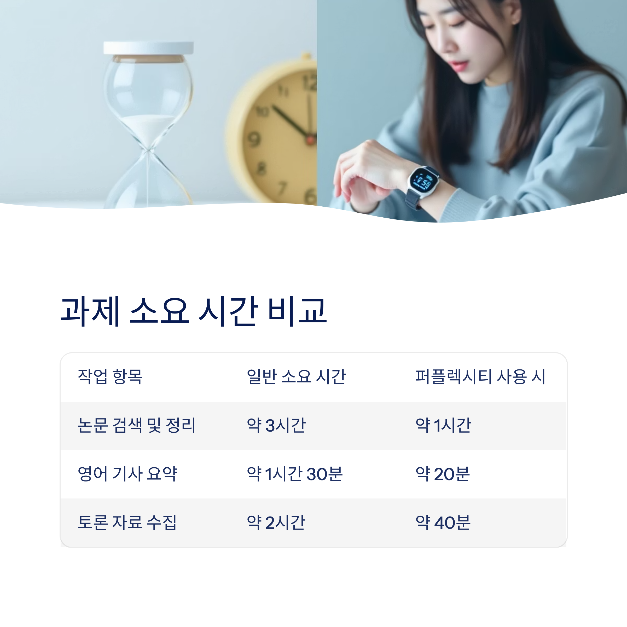 리서치 정리표: 퍼플렉시티 사용 시 과제 소요 시간 비교